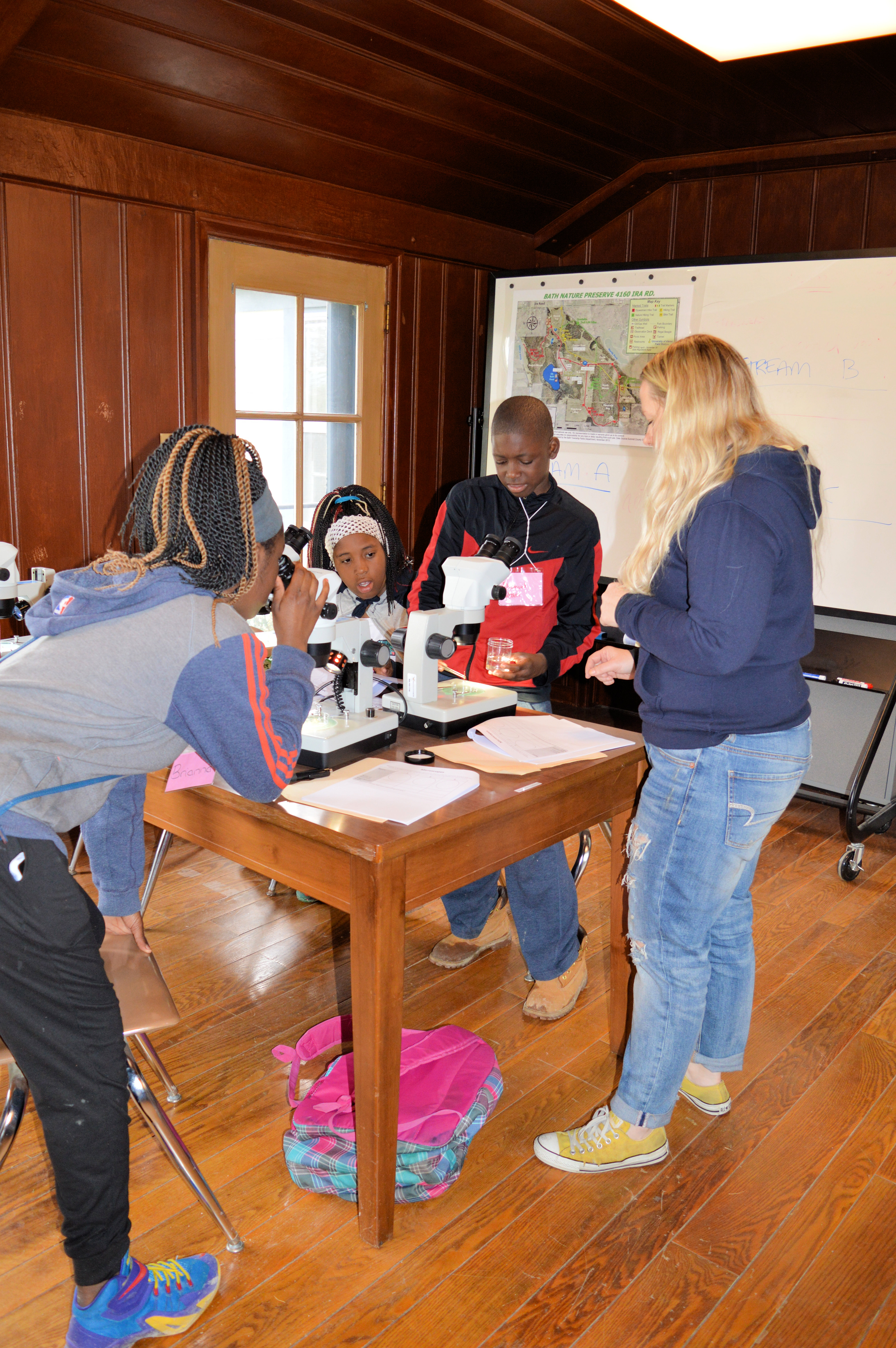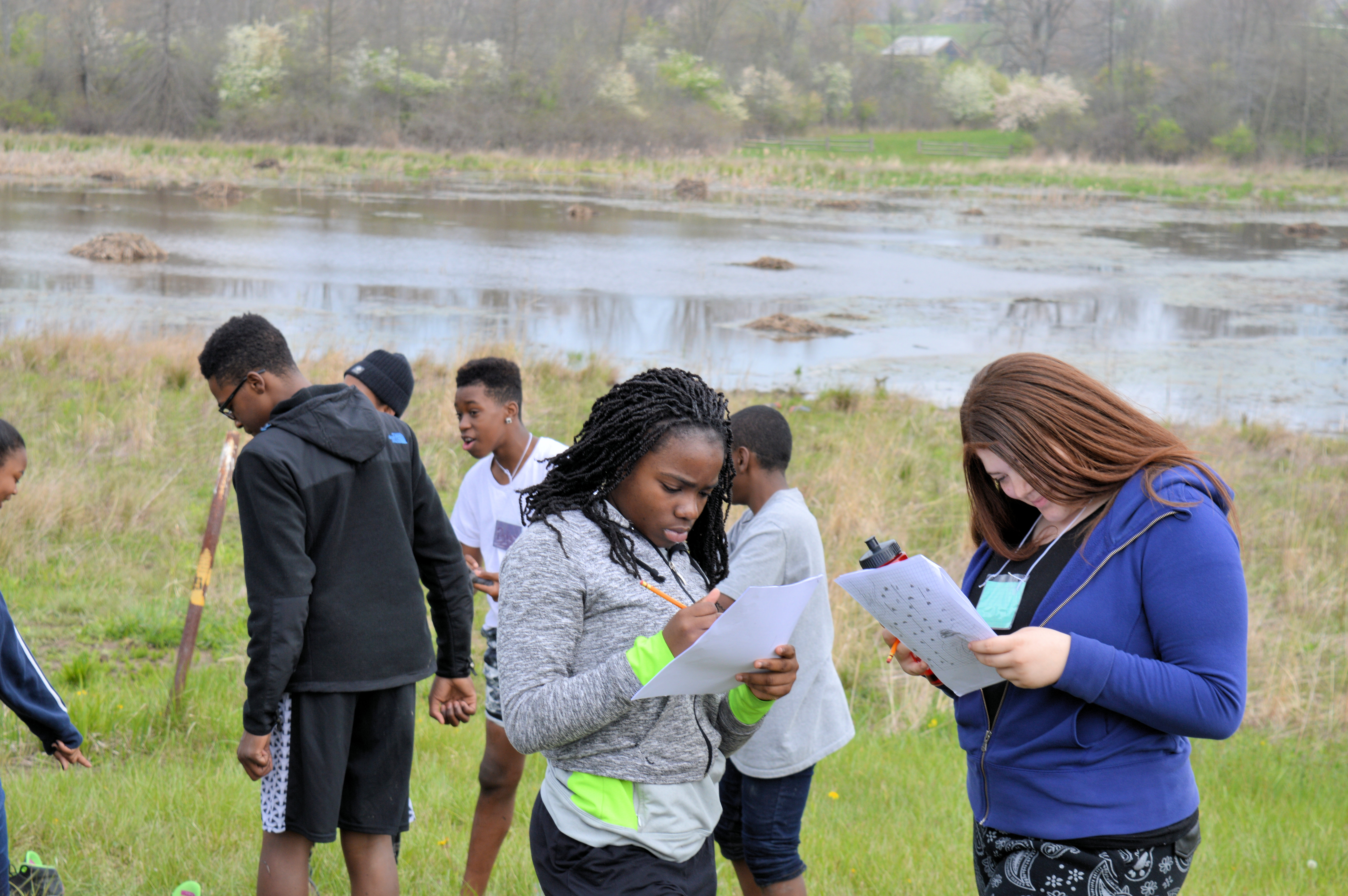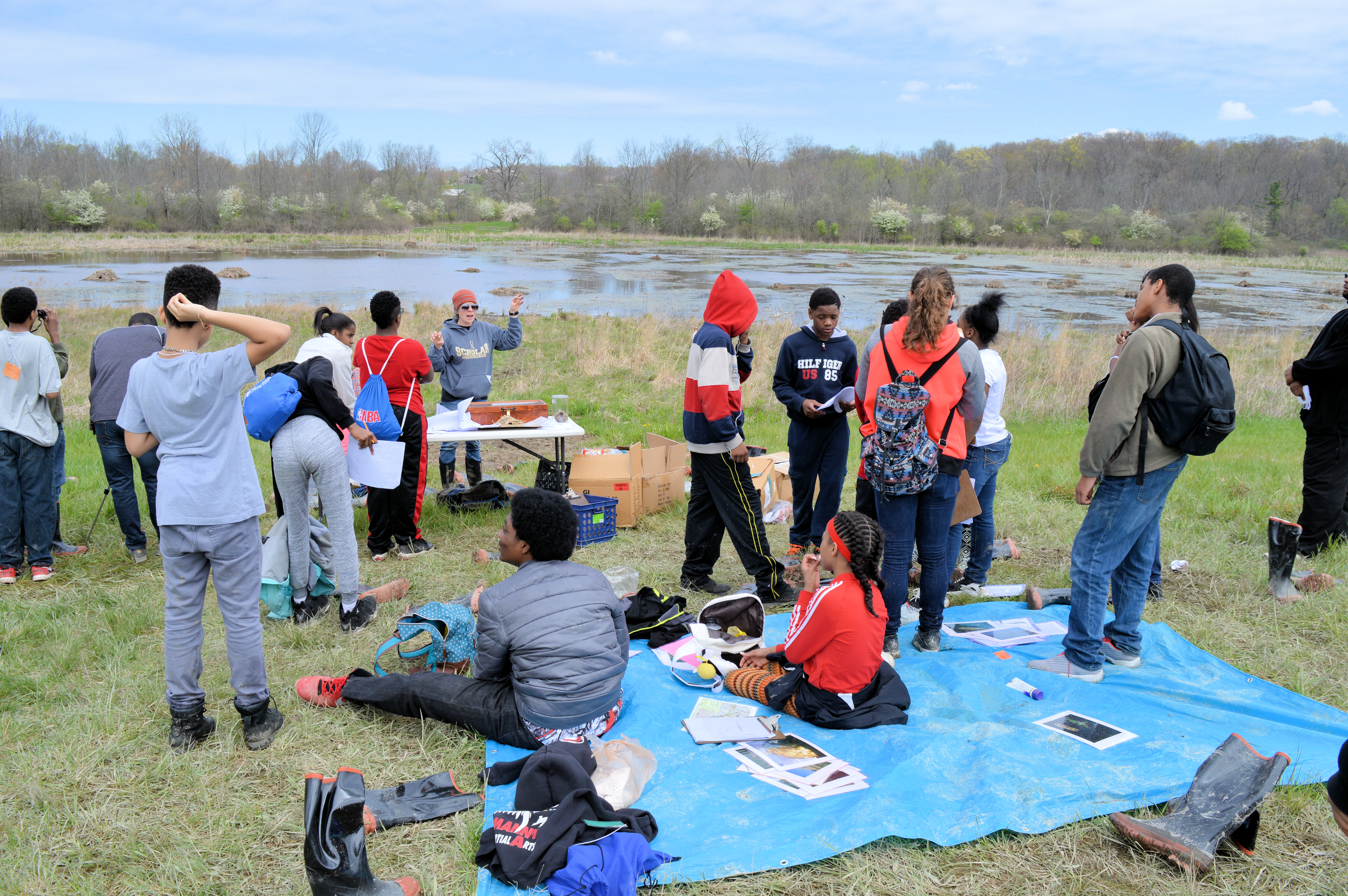 Over the course of four days, Buchtel CLC 7th – 10th grade students visited the University of Akron Field Station at Bath Nature Preserve. The students participated in various activities involving animal homes and architecture, yoga, journal keeping, math and mapping in relation to muskrats, macroinvertebrates, microscopes, and biomimetic art. Please take a look at the photo gallery below!