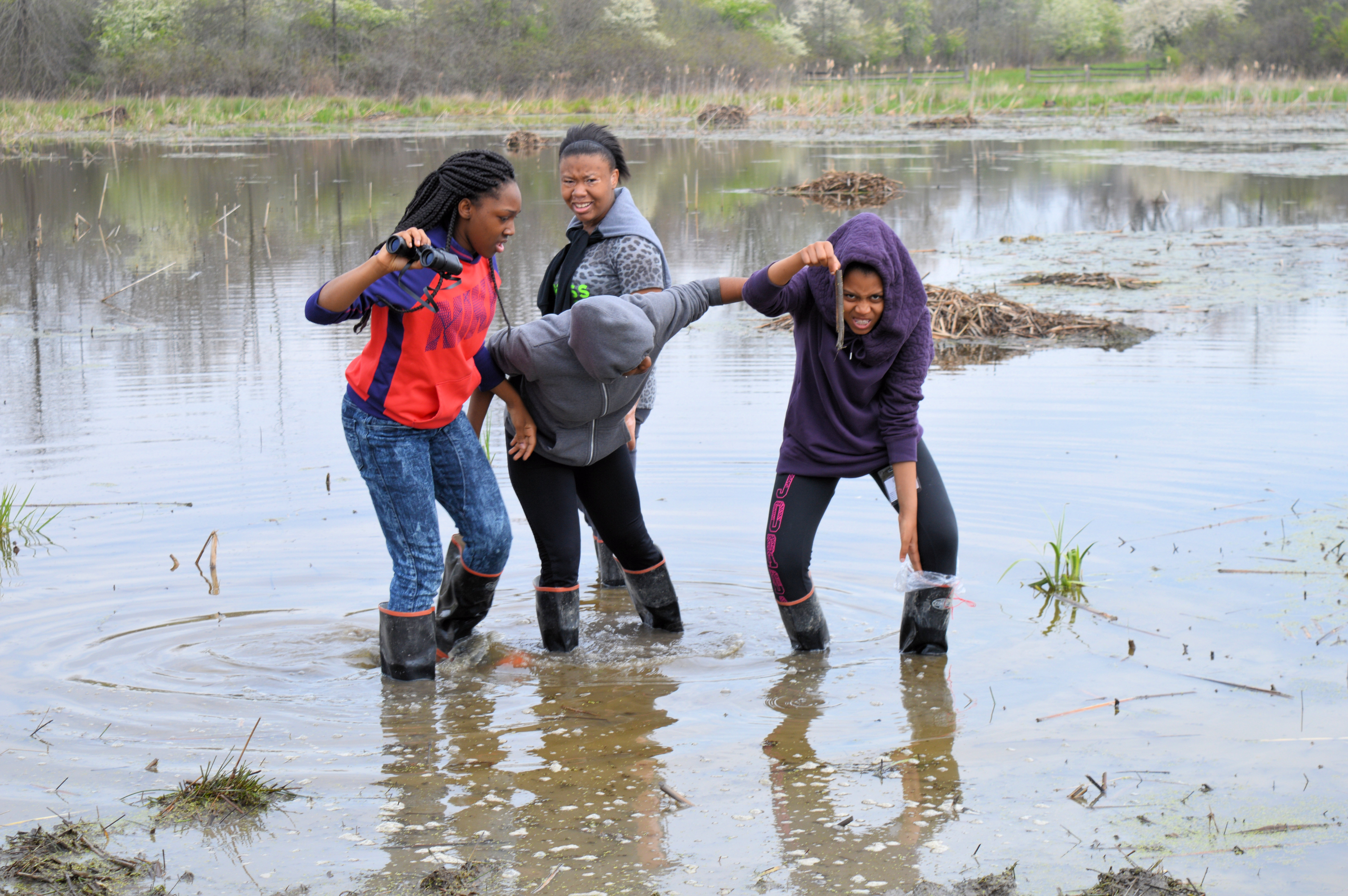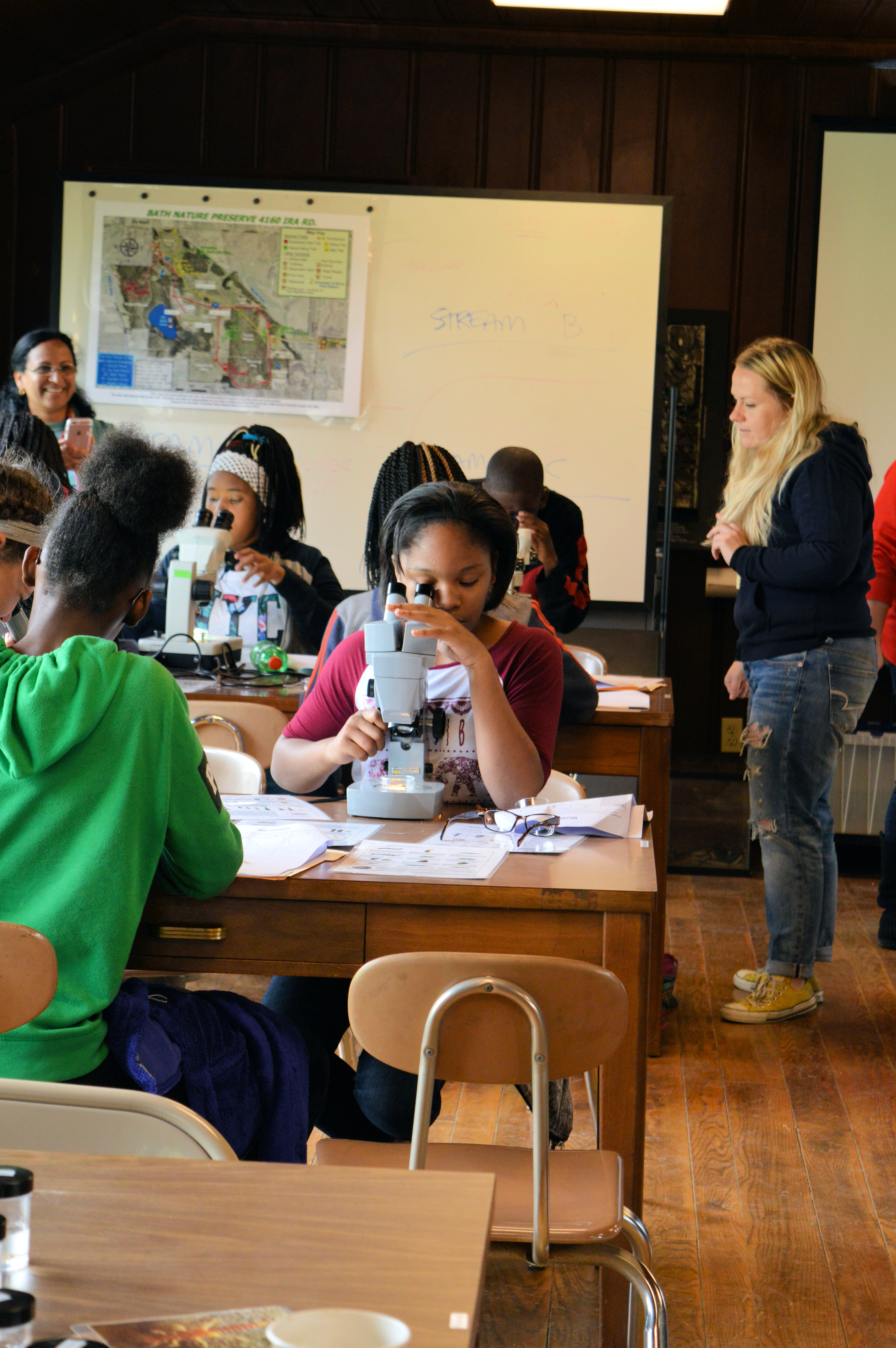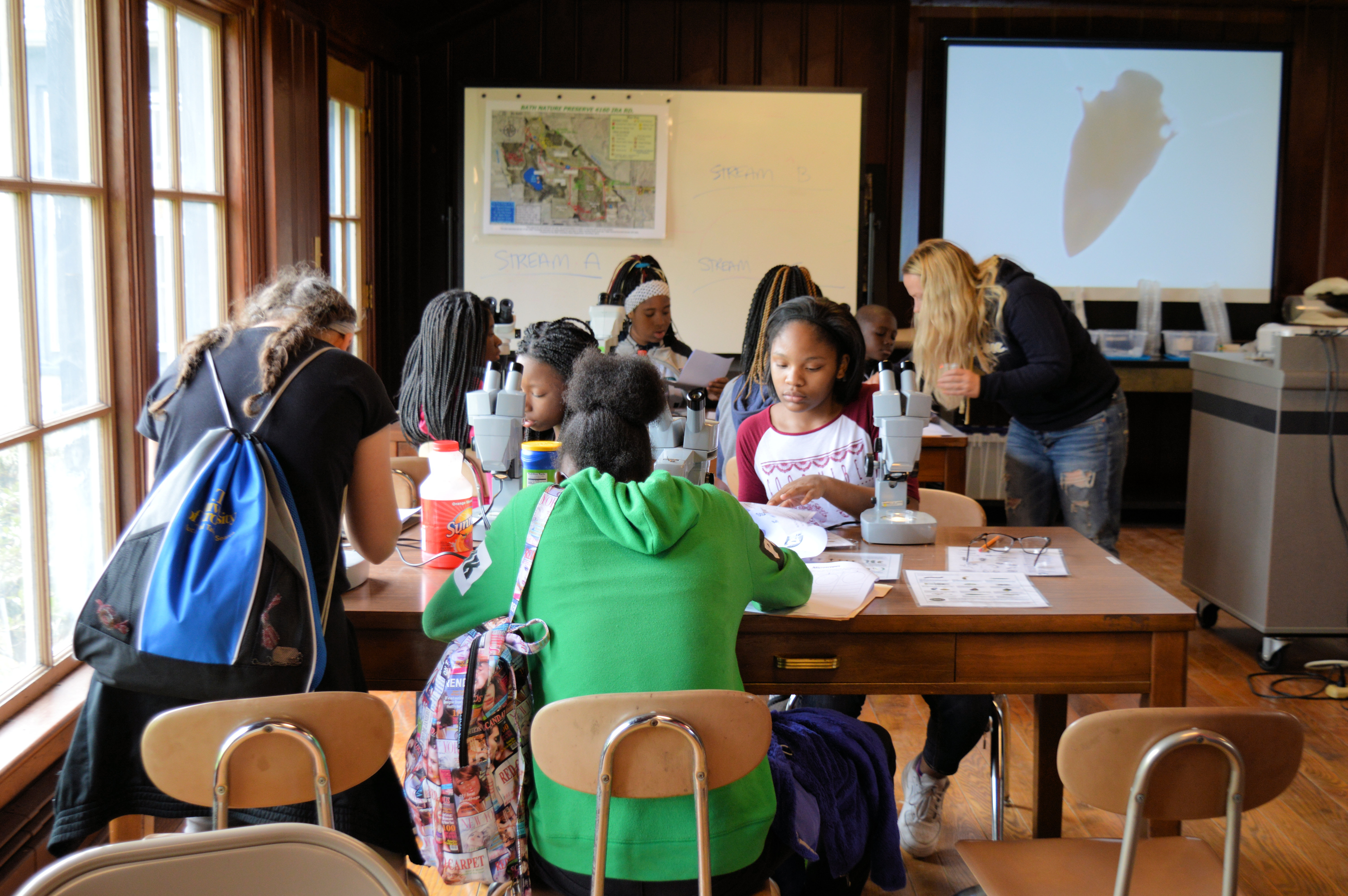 Over the course of four days, Buchtel CLC 7th – 10th grade students visited the University of Akron Field Station at Bath Nature Preserve. The students participated in various activities involving animal homes and architecture, yoga, journal keeping, math and mapping in relation to muskrats, macroinvertebrates, microscopes, and biomimetic art. Please take a look at the photo gallery below!